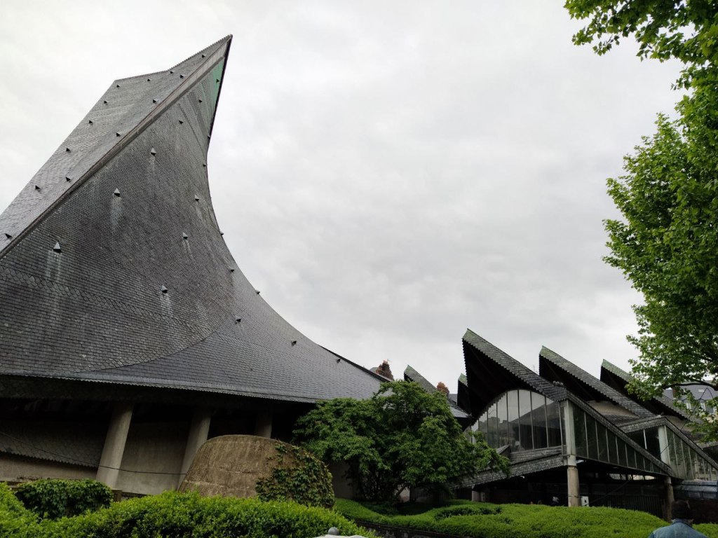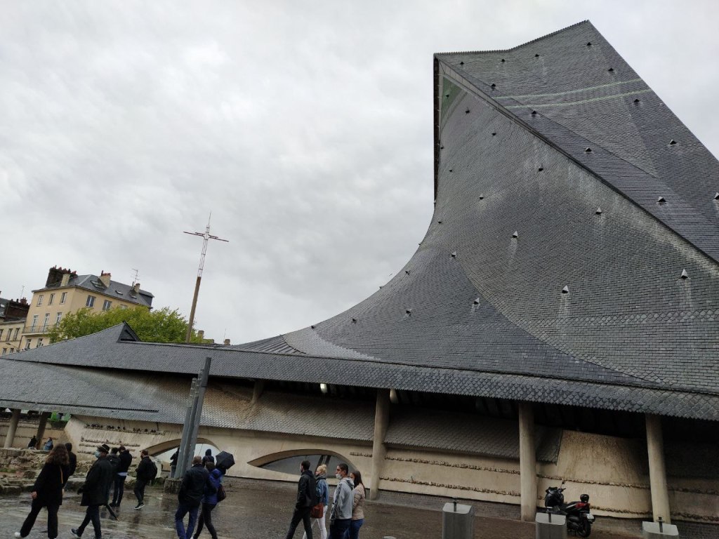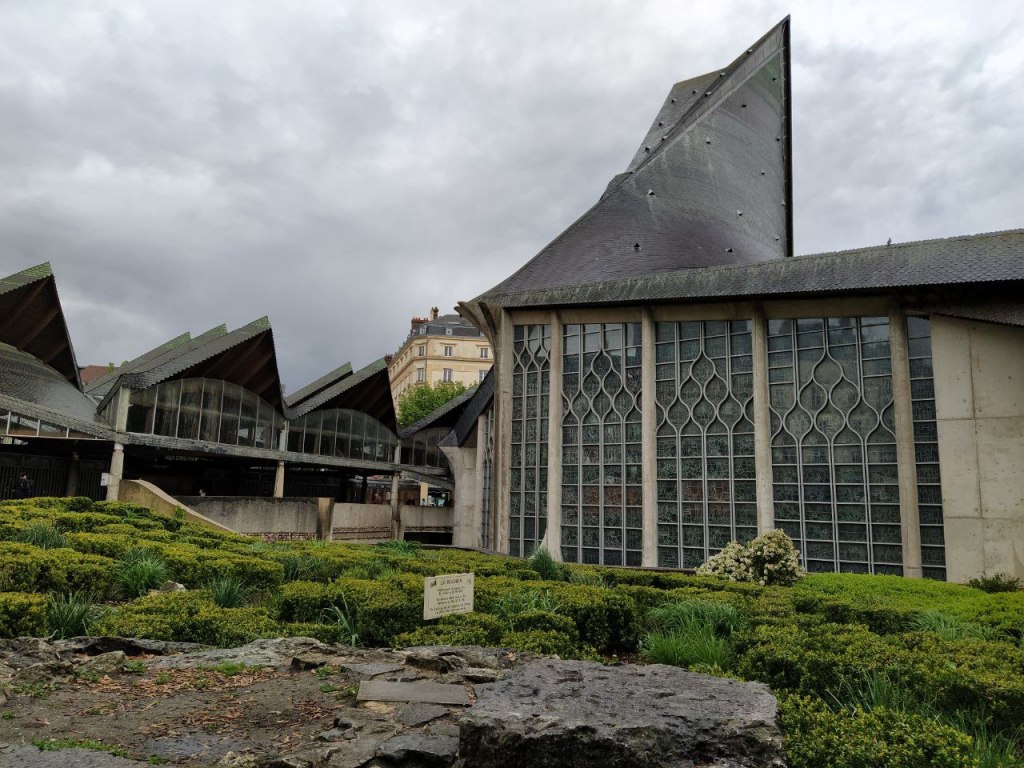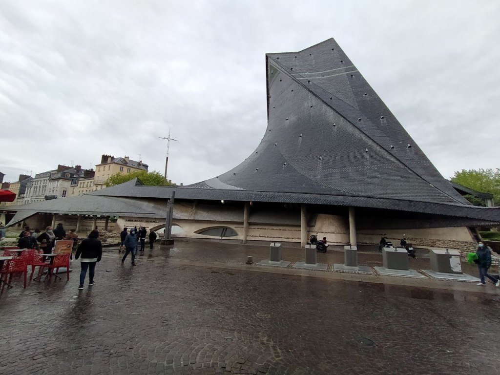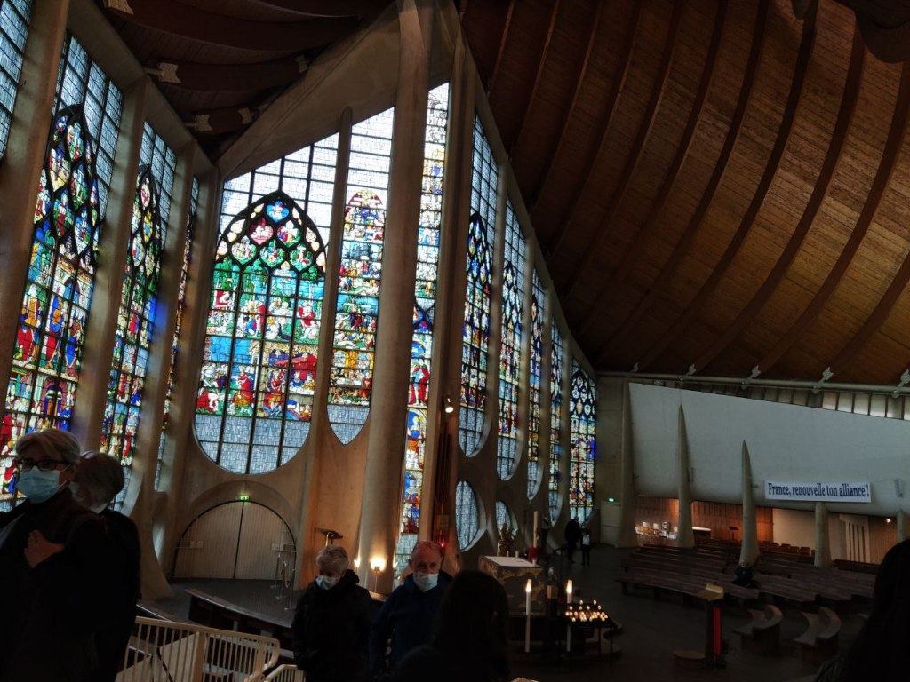 Las modernas líneas contrastan con las iglesias góticas de la ciudad. En realidad se quiso hacer un homenaje religioso a la Santa, pero a la vez, un homenaje civil de reconocimiento del Estado Francés.