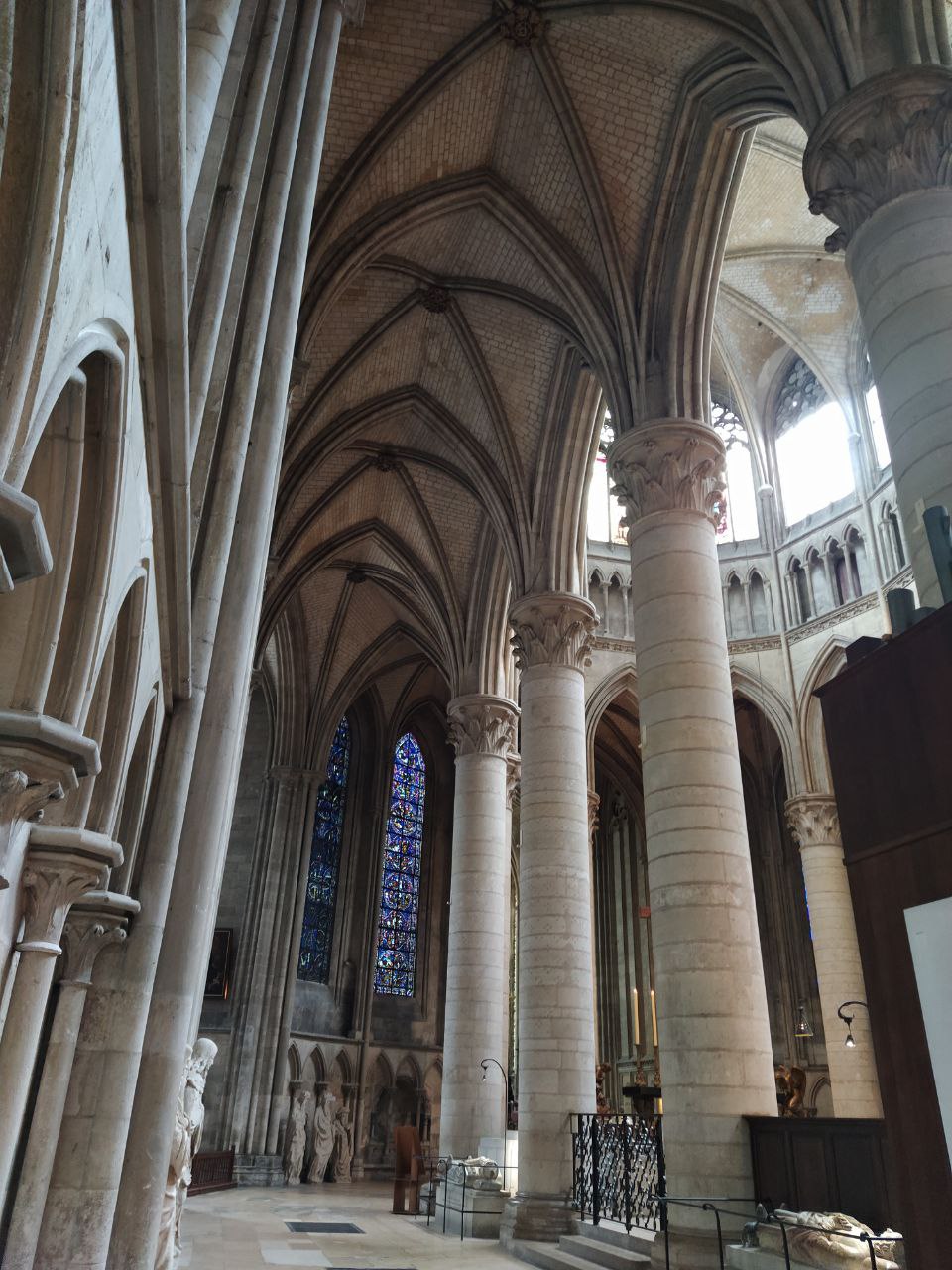 De las vidrieras originales, han sobrevivido muy pocas y todavía está sin restaurar la capilla de Santa Clotilde.
