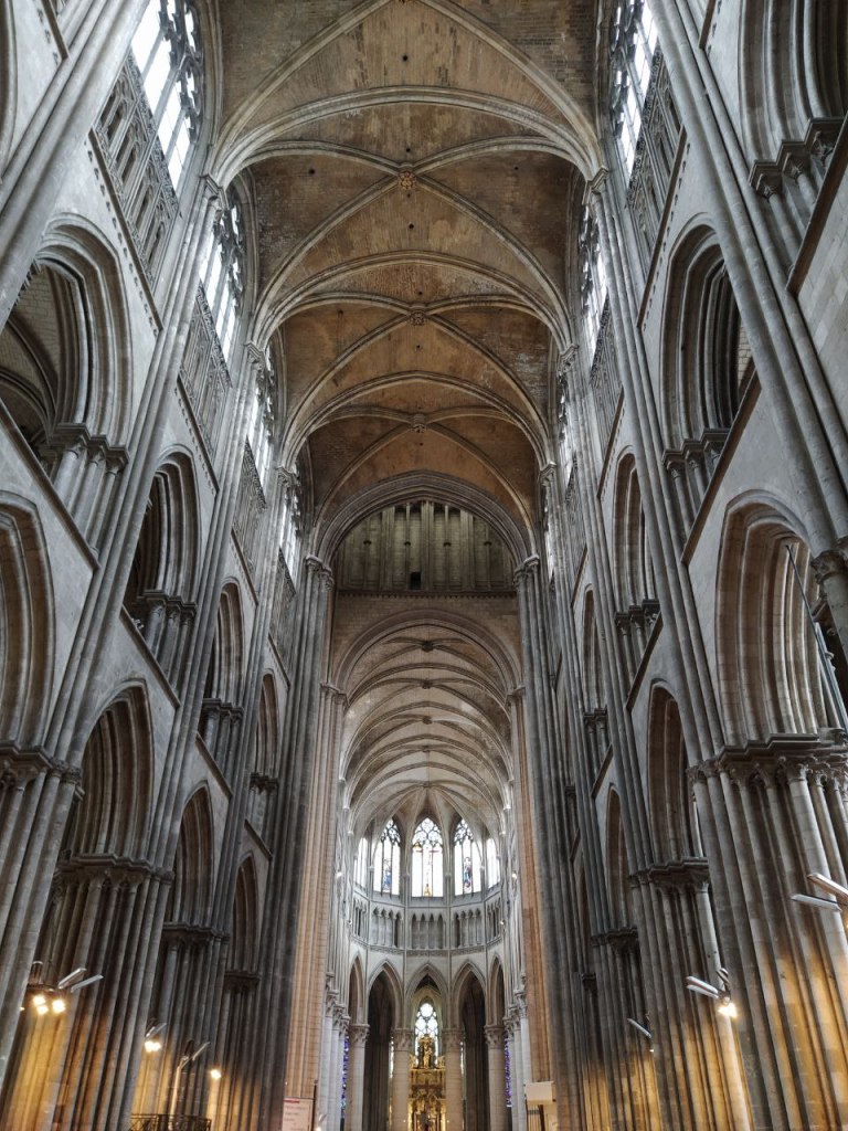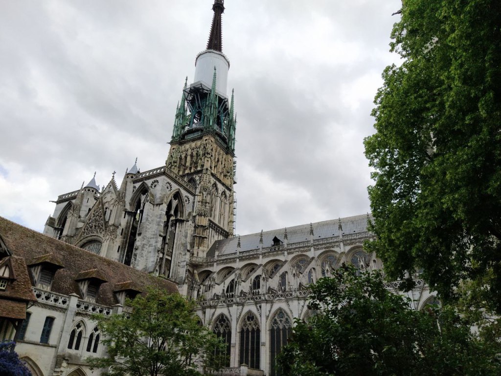La Abadía de Saint- Ouen, a menudo confundida con la Catedral, fue construida entre los siglos XIV y XVI, en gótico flamígero, aunque la fachada oeste, en la imagen, fue reconstruida en estilo neogótico en 1845.
