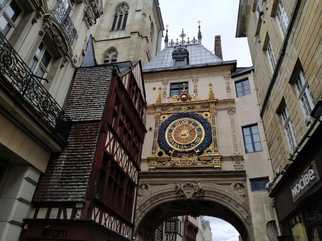 Desde la Plaza de la Catedral se puede caminar por la Rue del Gros Horloge .