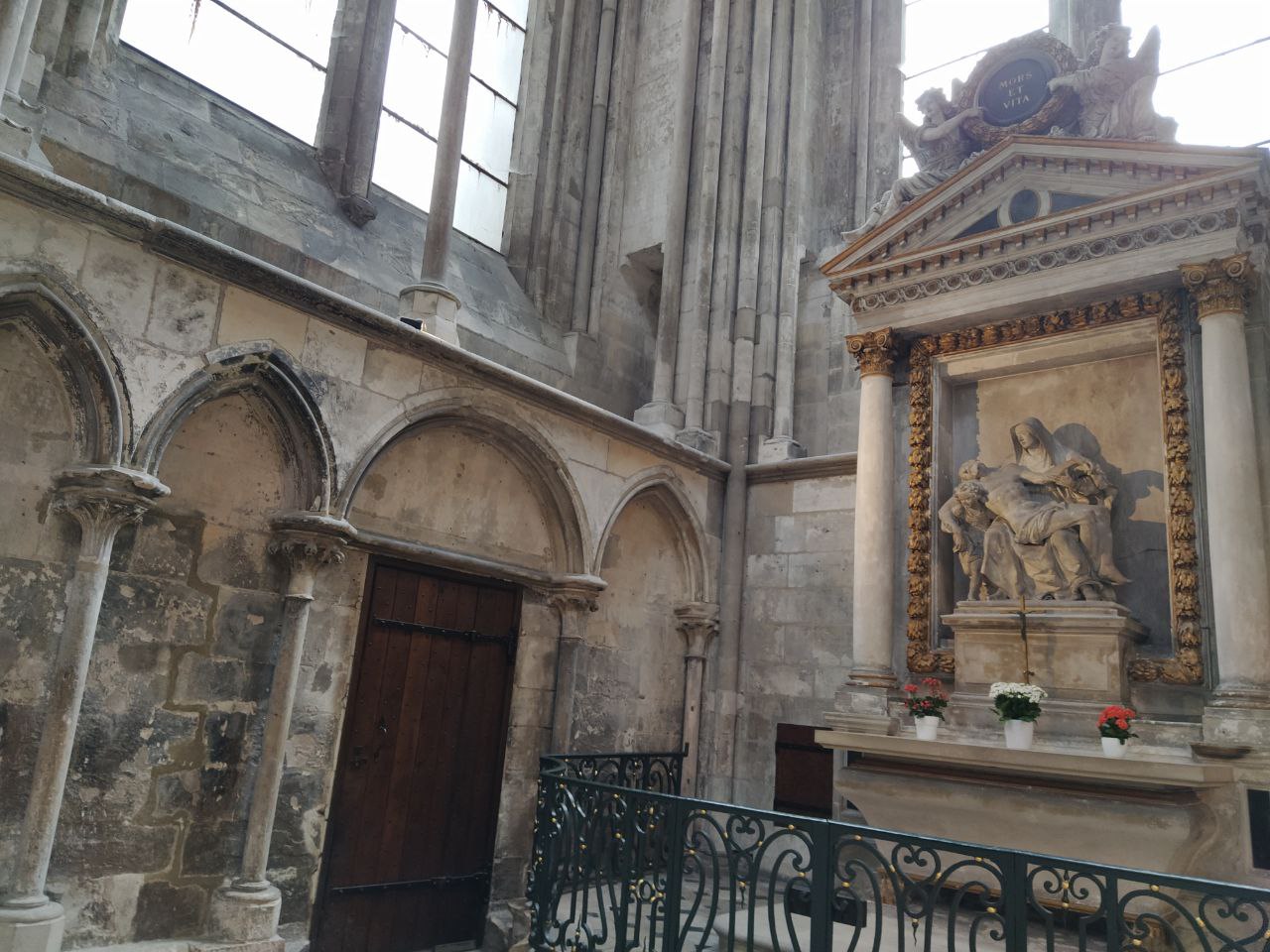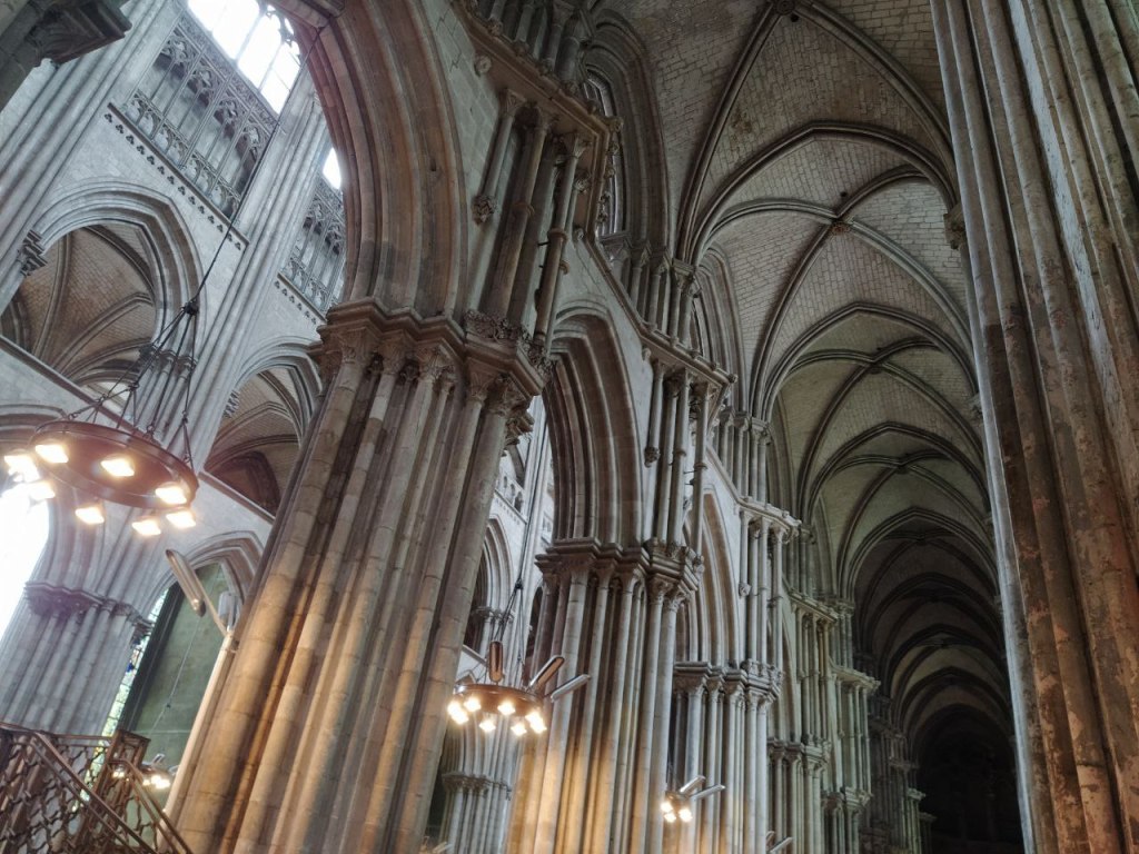 La catedral de Notre Dàme de Rouen. Construida sobre una basílica en época tardorromana y que luego fue una iglesia románica del siglo XI, de la que solo se conserva una cripta.