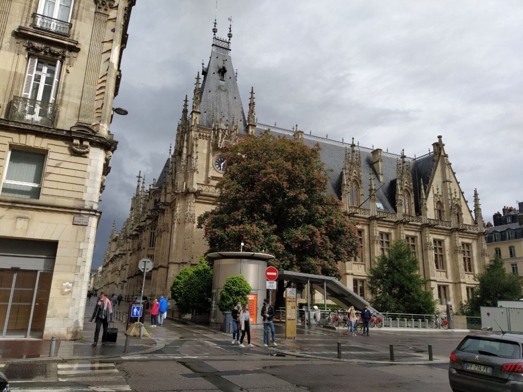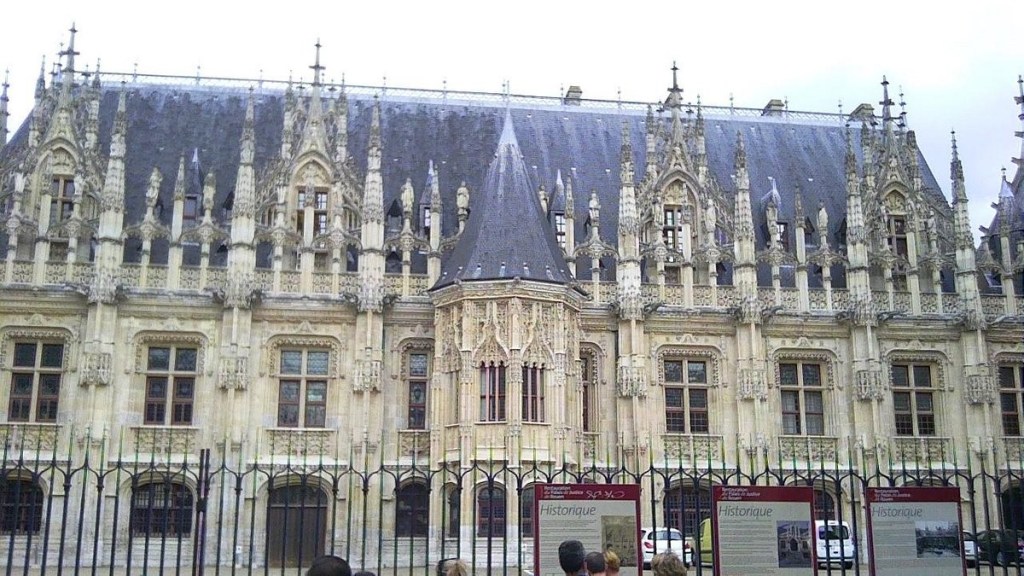 El palacio de justicia de Rouen, un magnífico edificio renacentista del siglo XVI, que primero fue el antiguo Échiquier , luego sede del Parlamento de Normandía, y desde la Revolución, sede del palacio de Justicia.