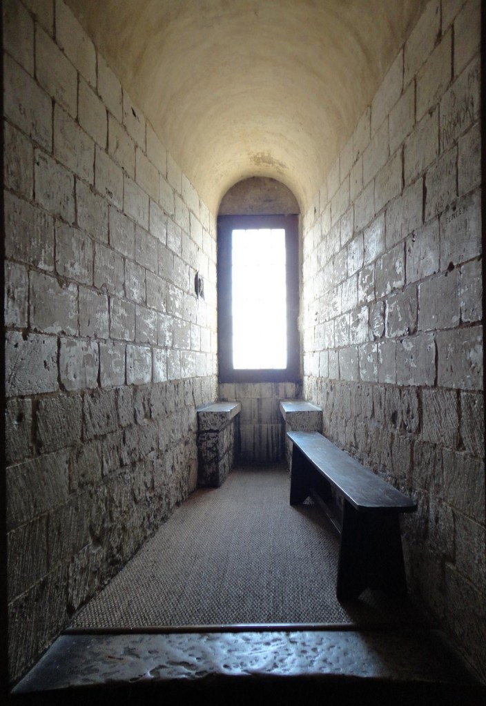 Según se sube, hay un par de pequeñas salitas. La torre tiene tres niveles. Está decorada con piezas de la época de la Guerra de los Cien Años.