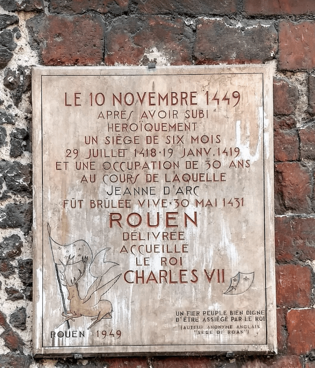 Memorial Juana de Arco. El 30 de mayo de 1431 fue el escenario, en plena Guerra de los Cien Años, de la muerte de Juana de Arco en la hoguera. Una gran cruz se levanta en el lugar donde se ubicó la hoguera.