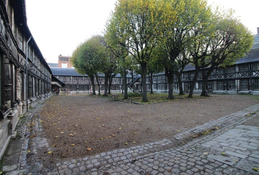 Aître Saint- Maclou. Es el edificio más significativo. Construido durante el gótico, fue utilizado como osario durante la Gran Peste, incluso hubo que ampliar sus edificios y galerías, y actualmente aloja la Escuela de Bellas Artes.