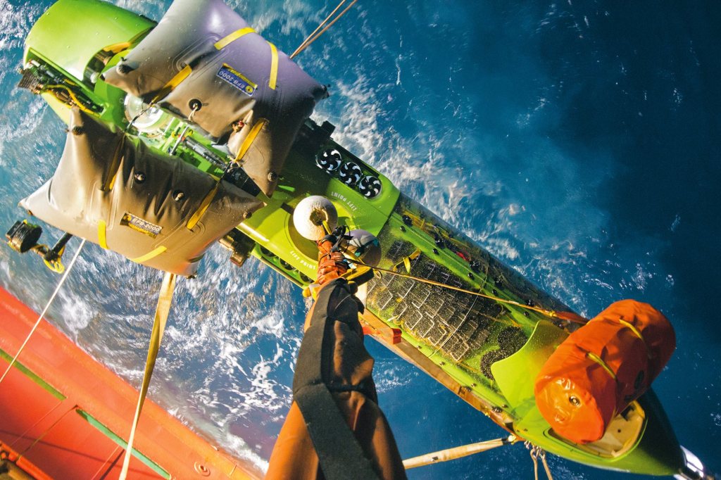 La operación fue un éxito. En la foto, el Deepsea Challenger es sacado de la fosa. James Cameron tuvo que diseñar y construir su propio submarino. Lo más importante, que resistiese la increíble presión que hay en las profundidades.