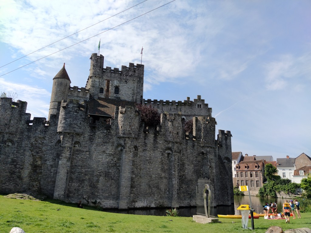 El castillo se encuentra en el centro de Gante y se fue ampliando con los años. Su torre domina el paisaje y está rodeado por un foso.