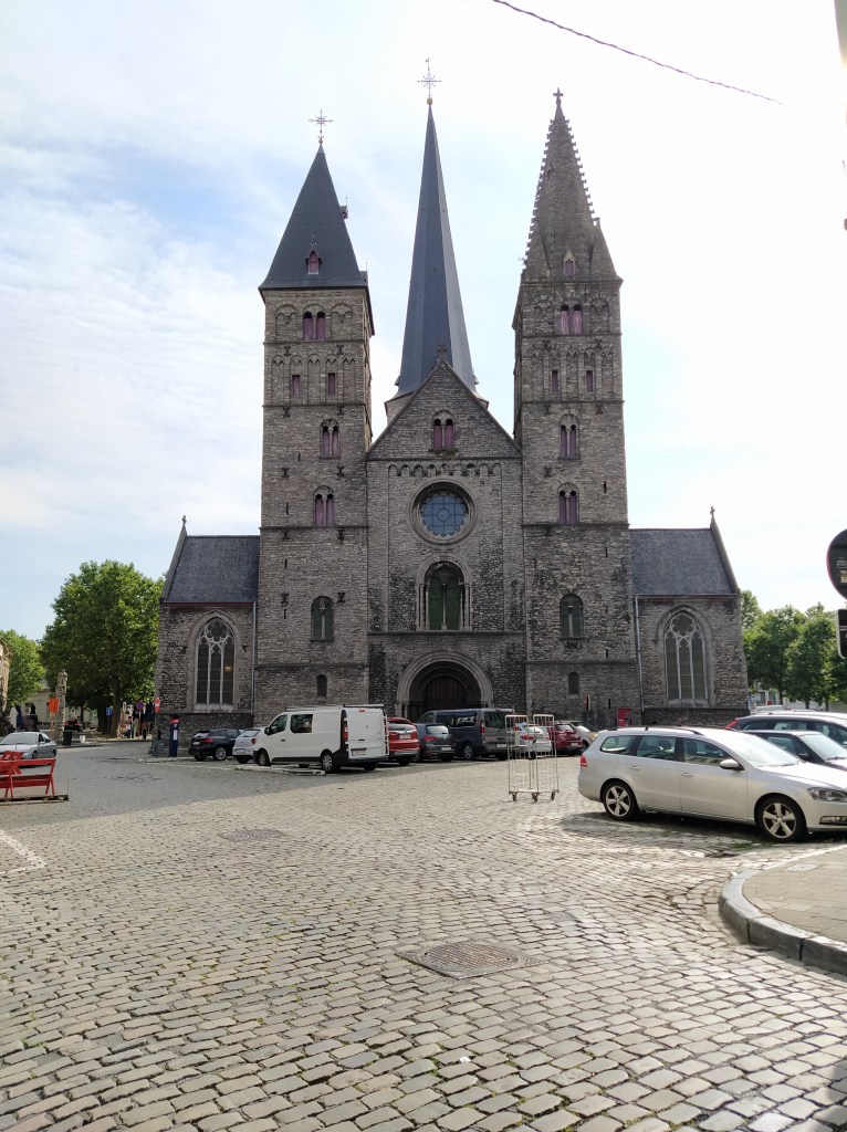 Iglesia de San Nicolás/ Sint Niklaaskerk. Construida en el siglo XIII, sobre otro templo incendiado en 1176, fue financiada por el gremio de comerciantes. Destacan sus piedras de color azul grisáceo, con cuatro torres cónicas terminadas en pizarra y sus contrafuertes y pequeños arbotantes. En el centro, la torre campanario, la linterna del crucero.