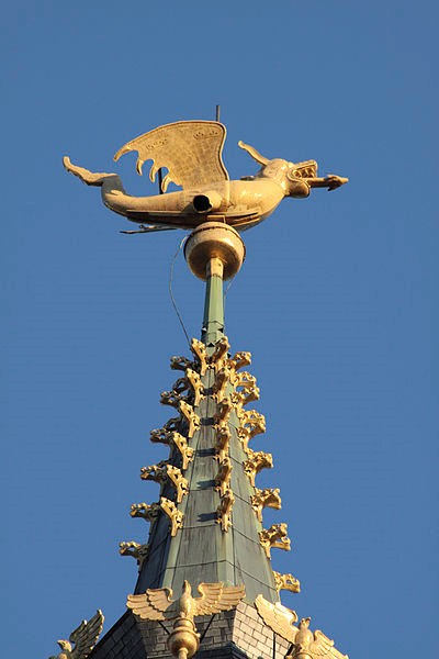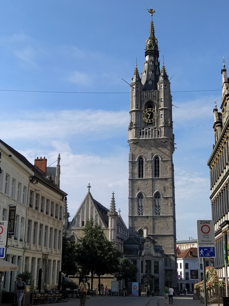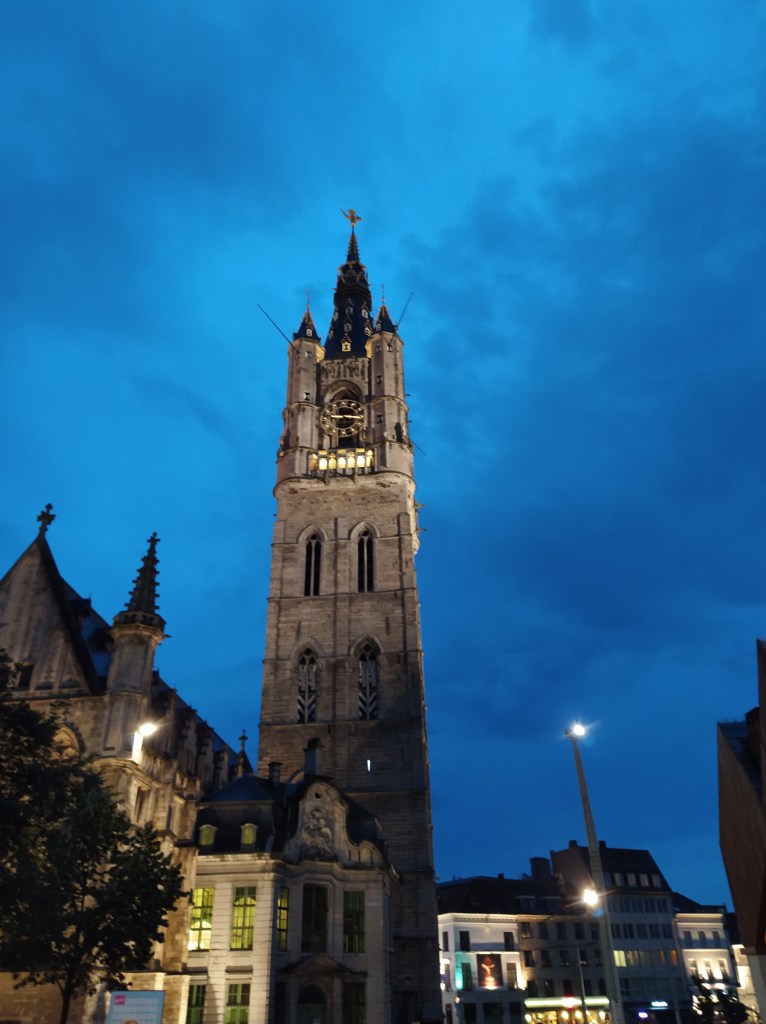 La Torre Belfort, o Torre del Campanario. Tiene 91 m de altura y fue construida en 1313, y representa la autonomía de la ciudad y el enorme poder de los gremios medievales. En lo alto se colocó el famoso dragón dorado, que fue sustituido por una aguja neogótica y, al final, en 1911, fue reemplazada por la estructura actual.