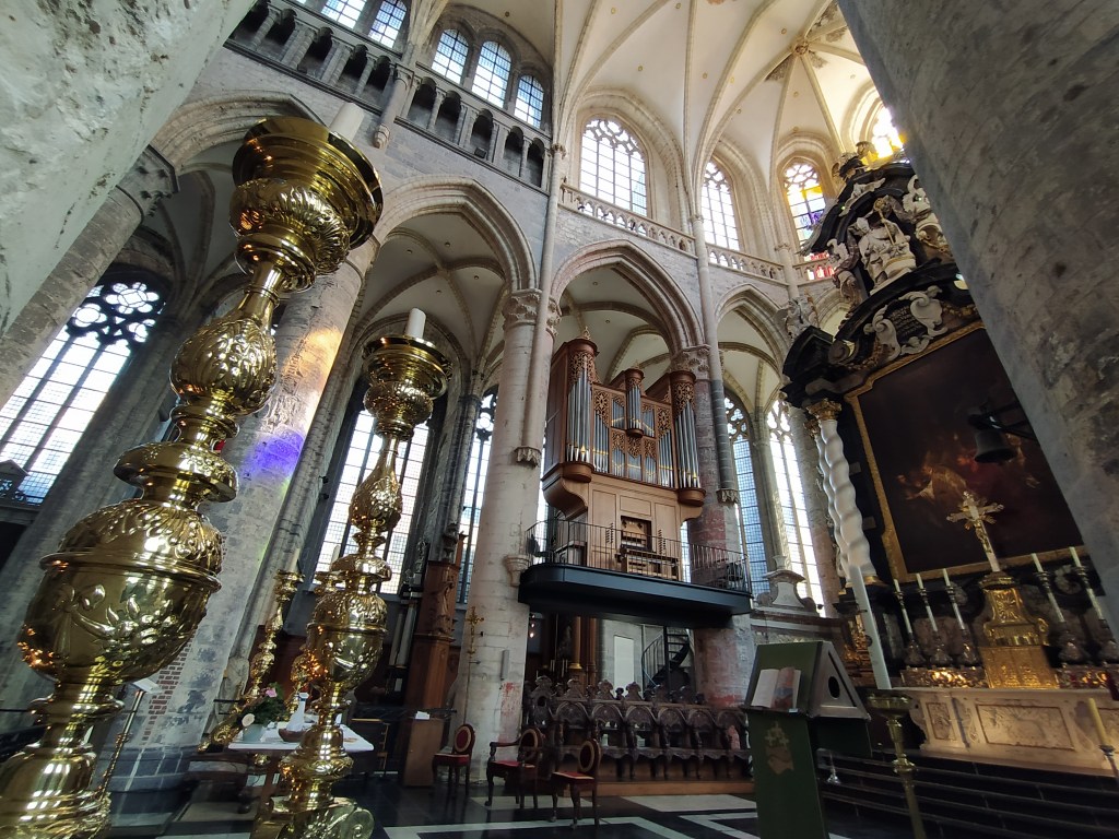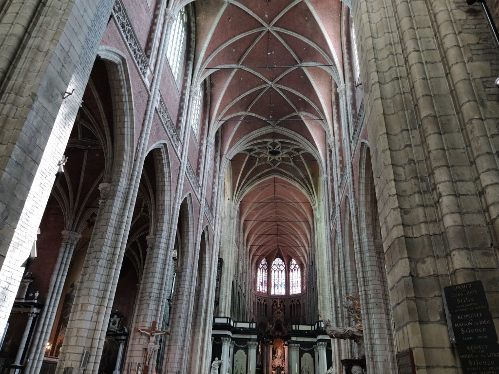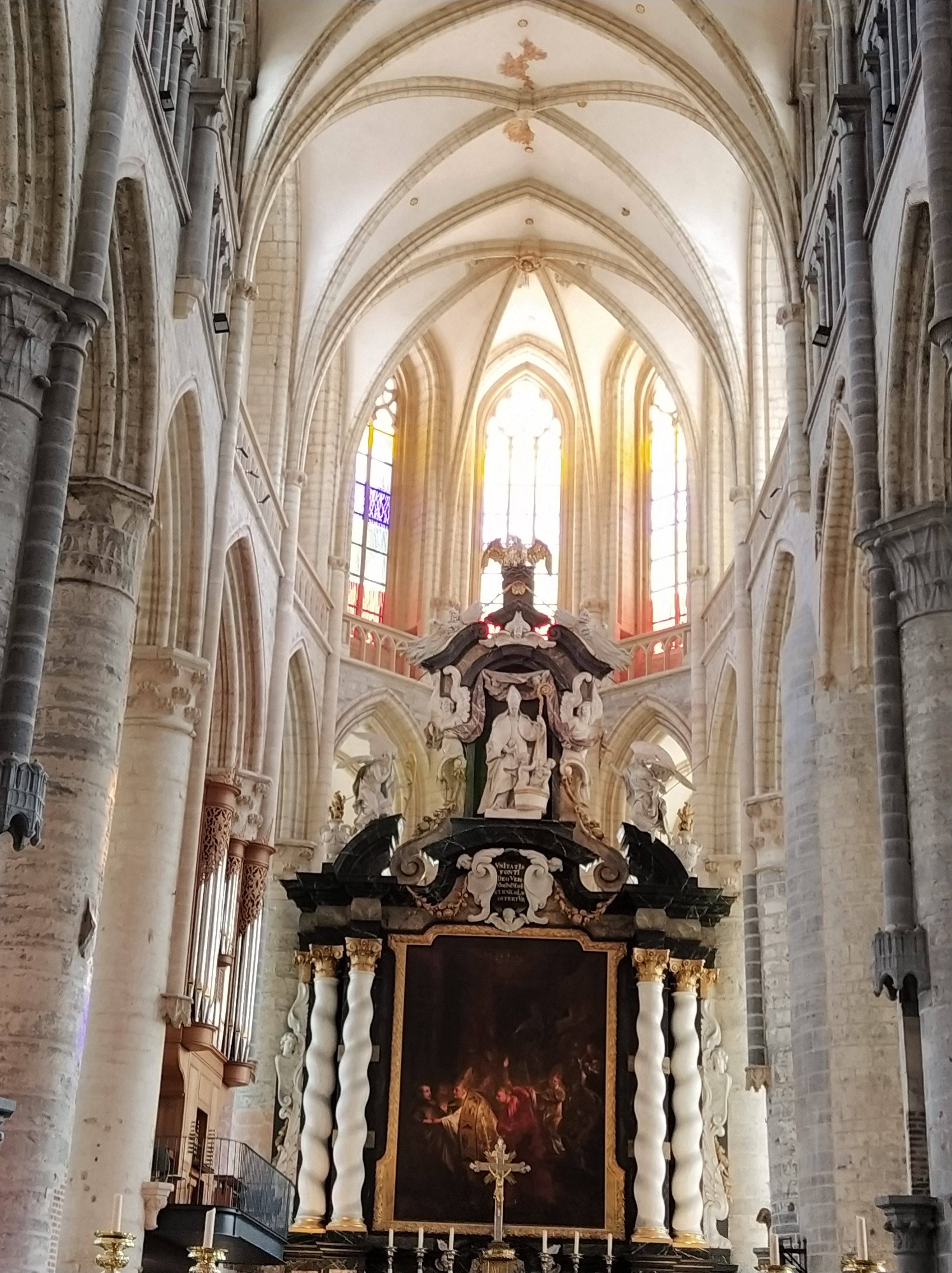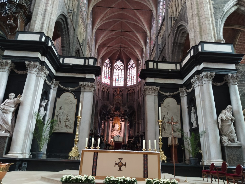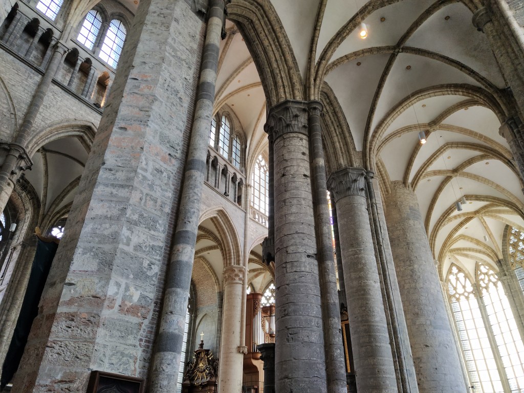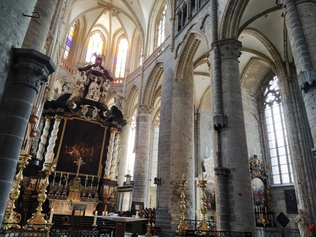 Nave central de la Catedral de San Bavón, patrón de Gante. Fue un santo del siglo VII, nacido en Lieja.