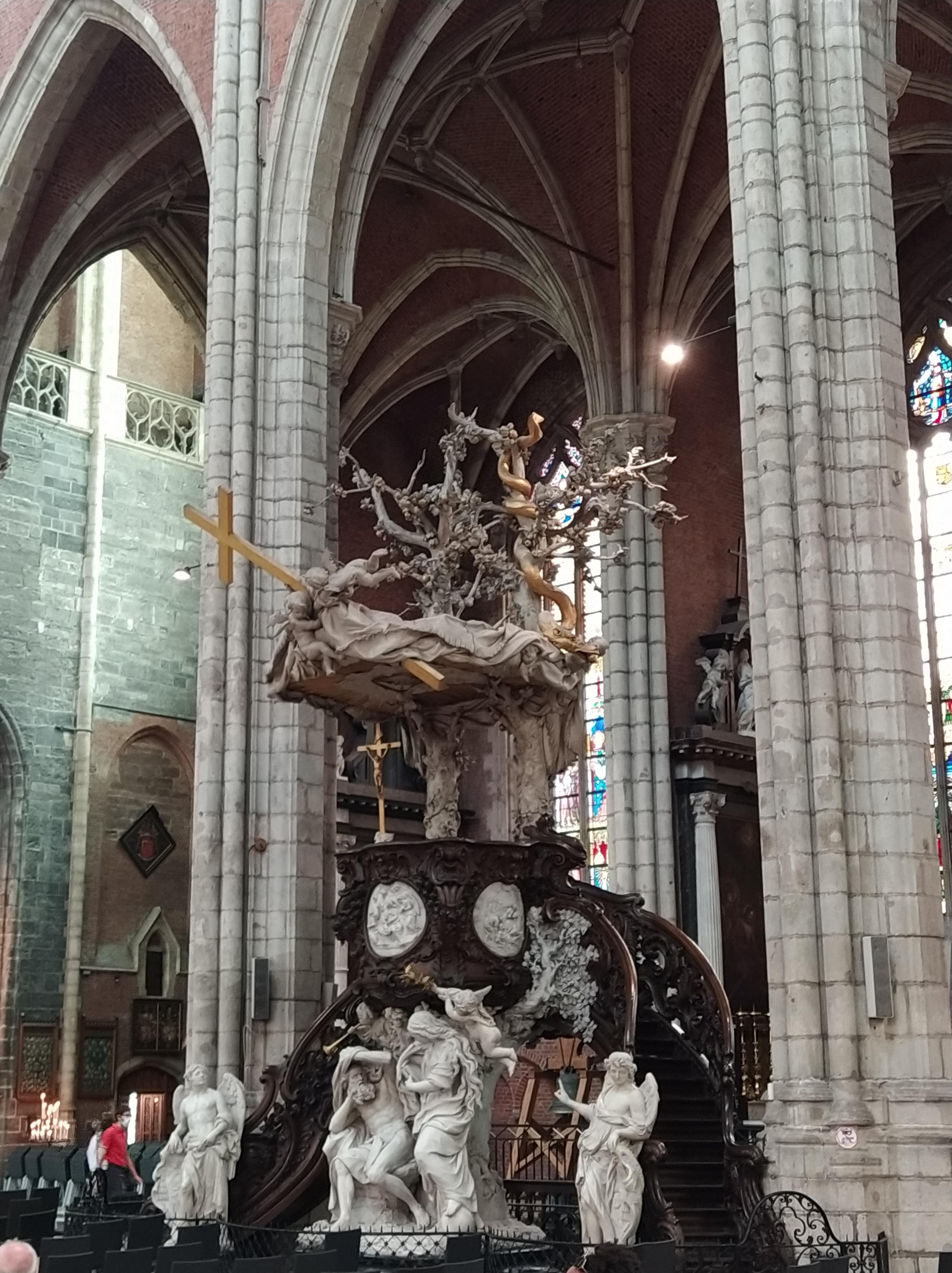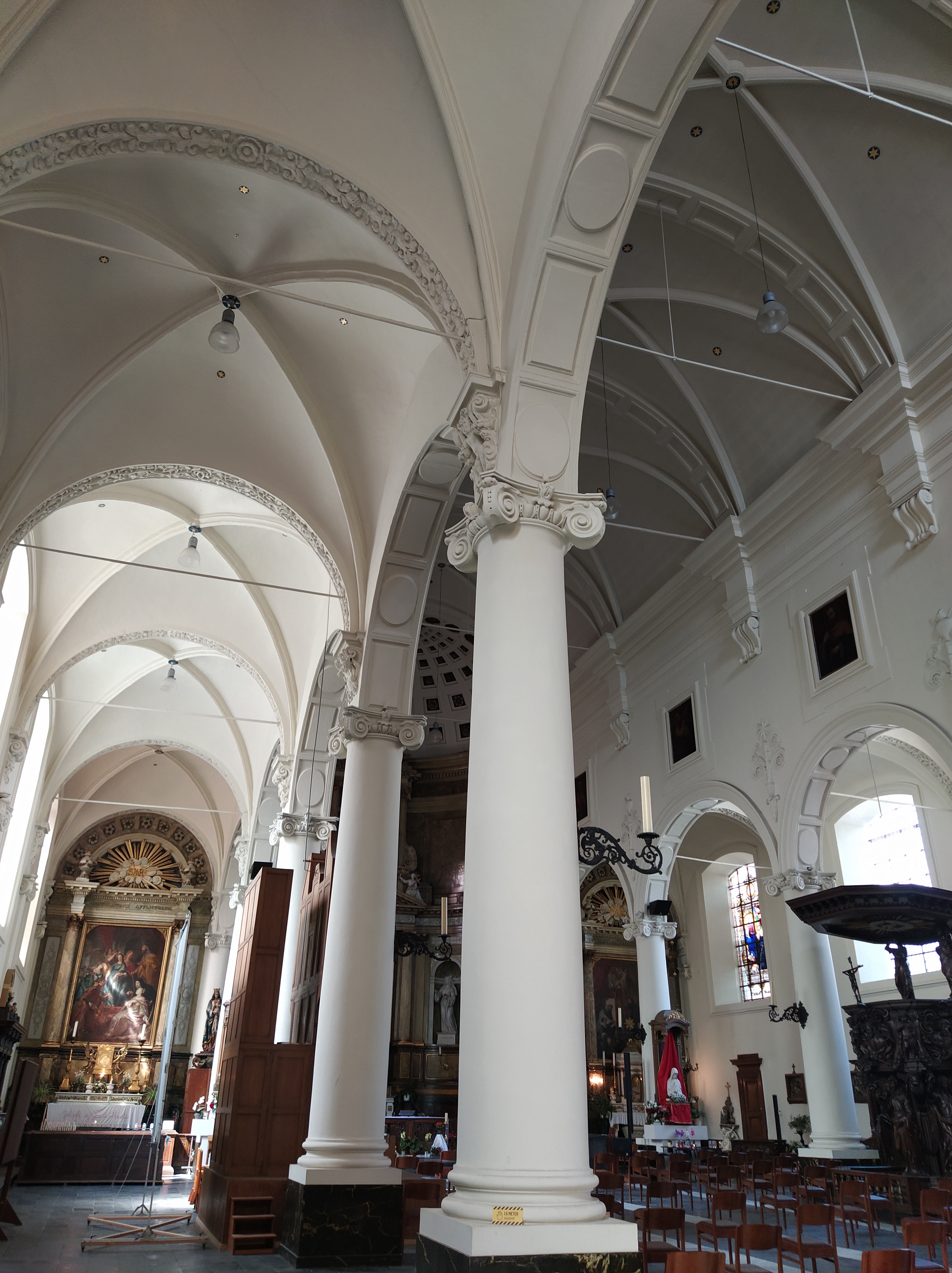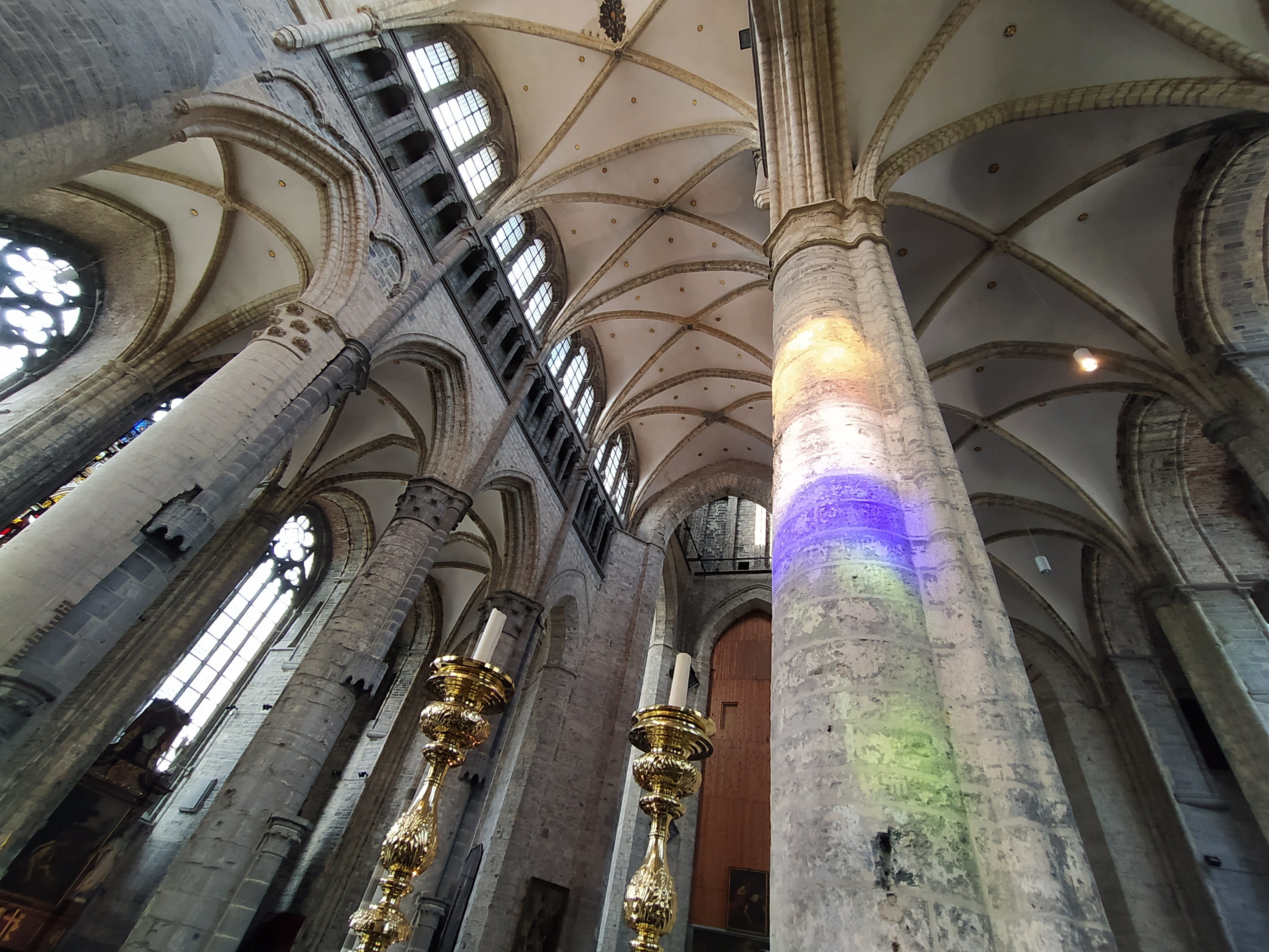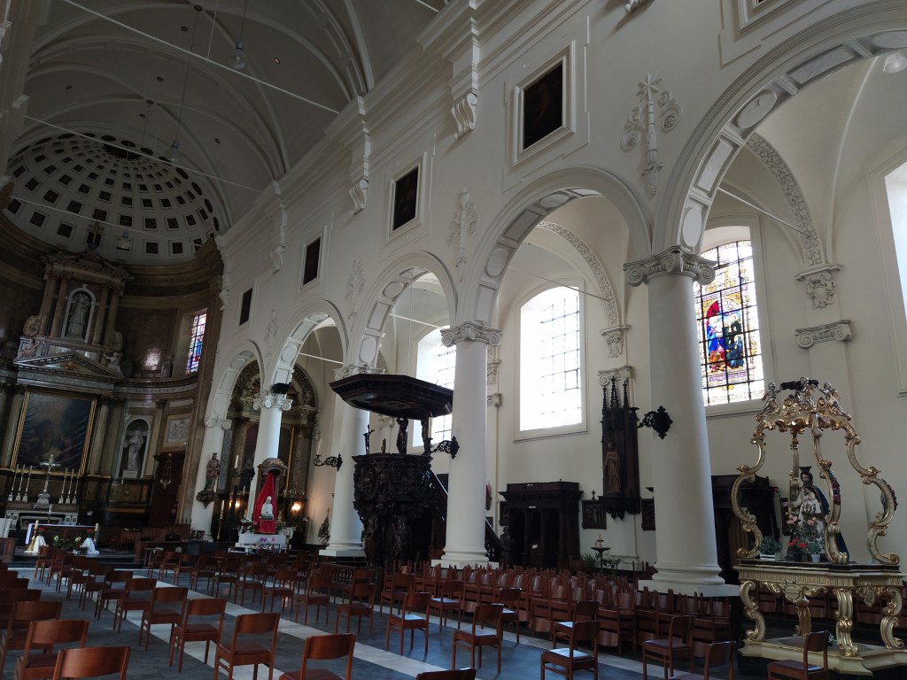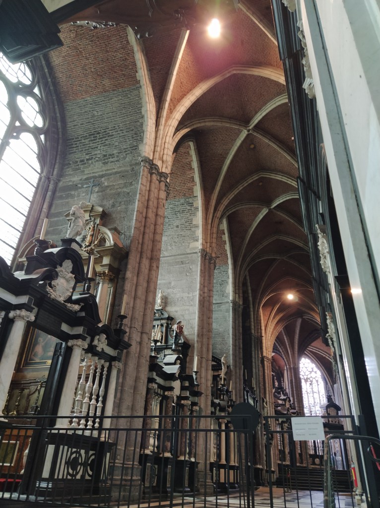 Nave central de la Catedral de San Bavón, patrón de Gante. Fue un santo del siglo VII, nacido en Lieja.