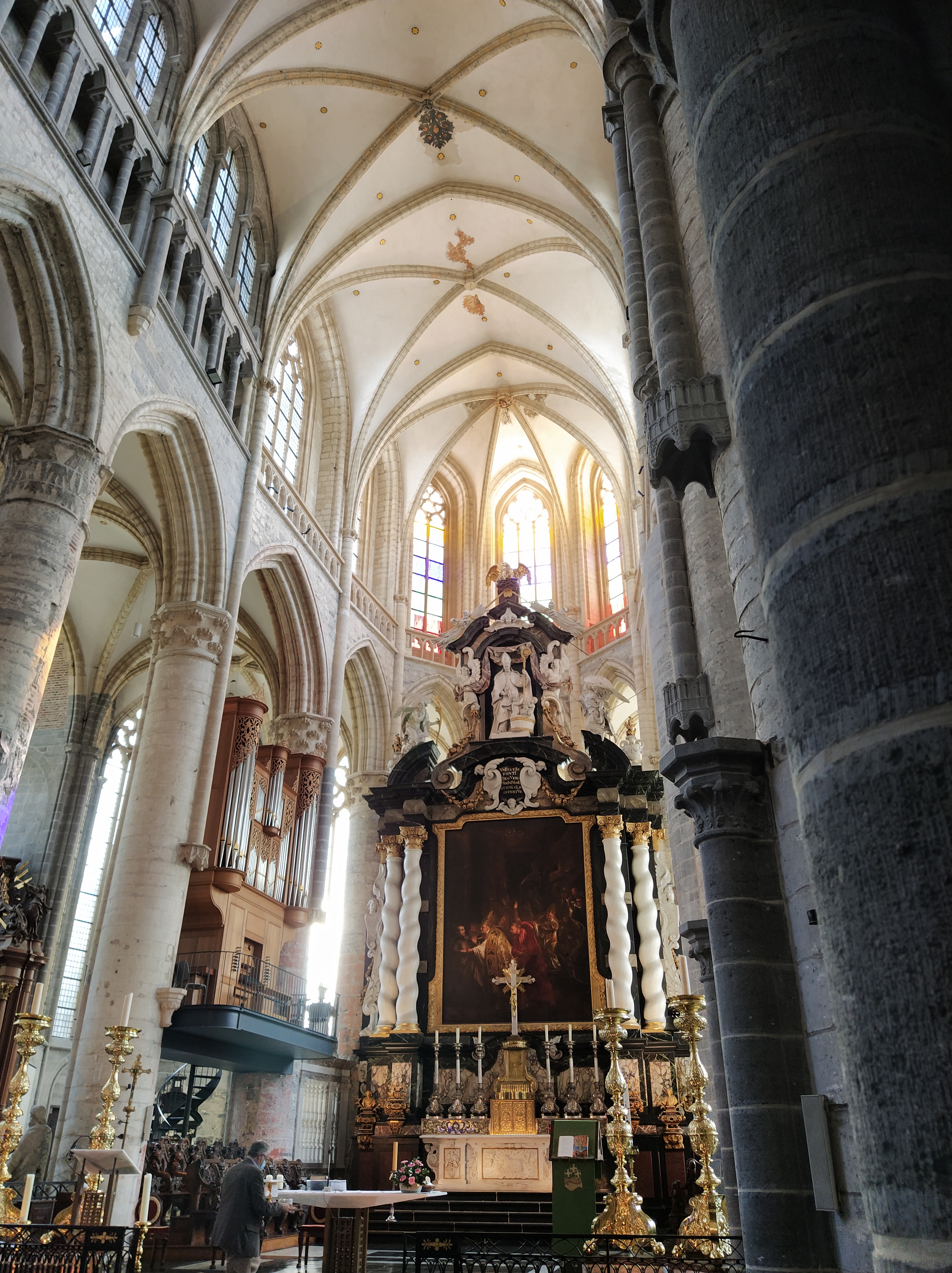 El órgano, San José y la glorificación de San Bavón, en el ábside detrás del altar mayor.