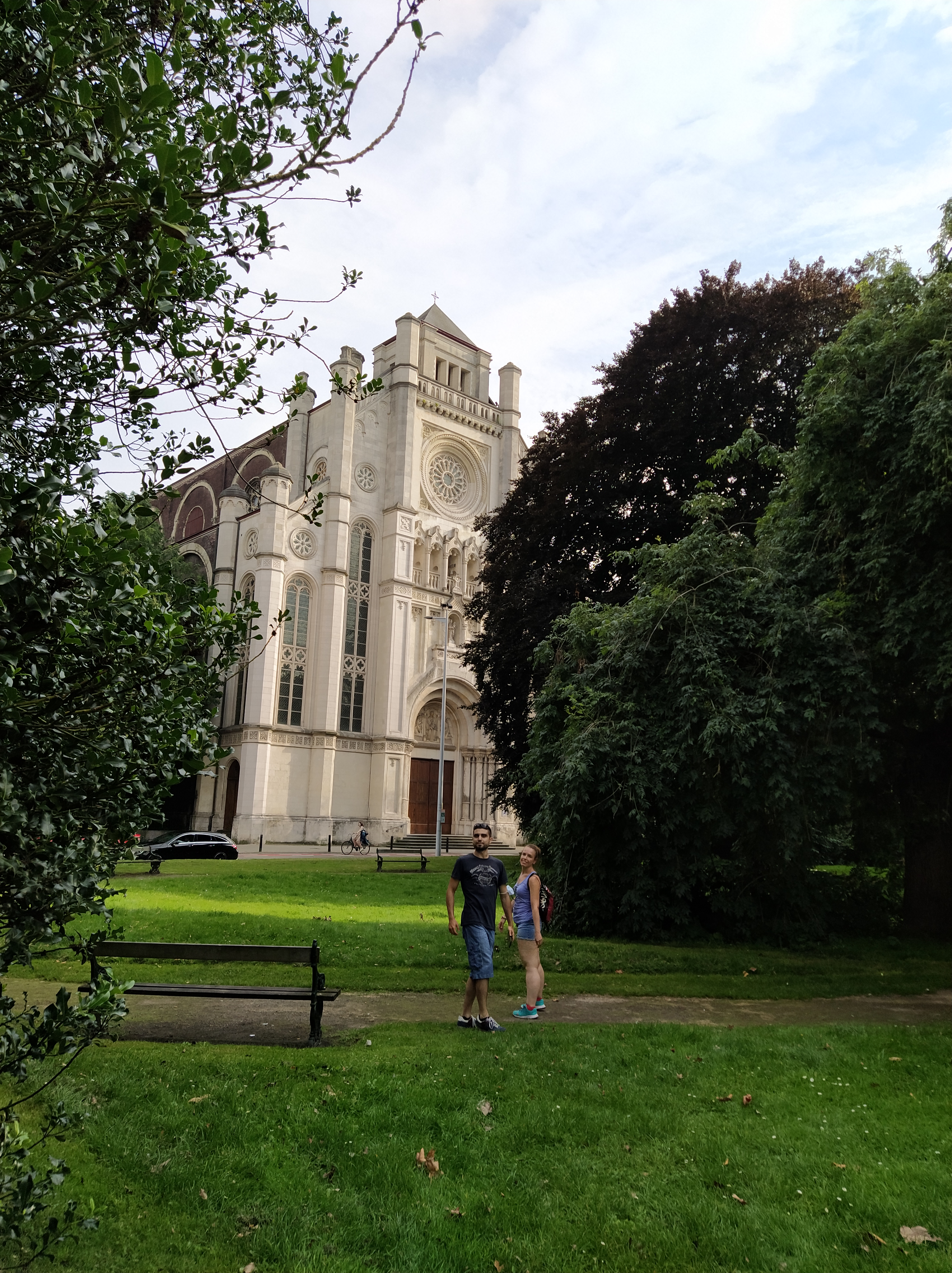Iglesia de Santa Ana o Sint Annakerk, del siglo XIX, de estilo llamado Rundbogenstil, un estilo ecléctico que mezcla el románico, el gótico y el bizantino. La torre parece que está incompleta.