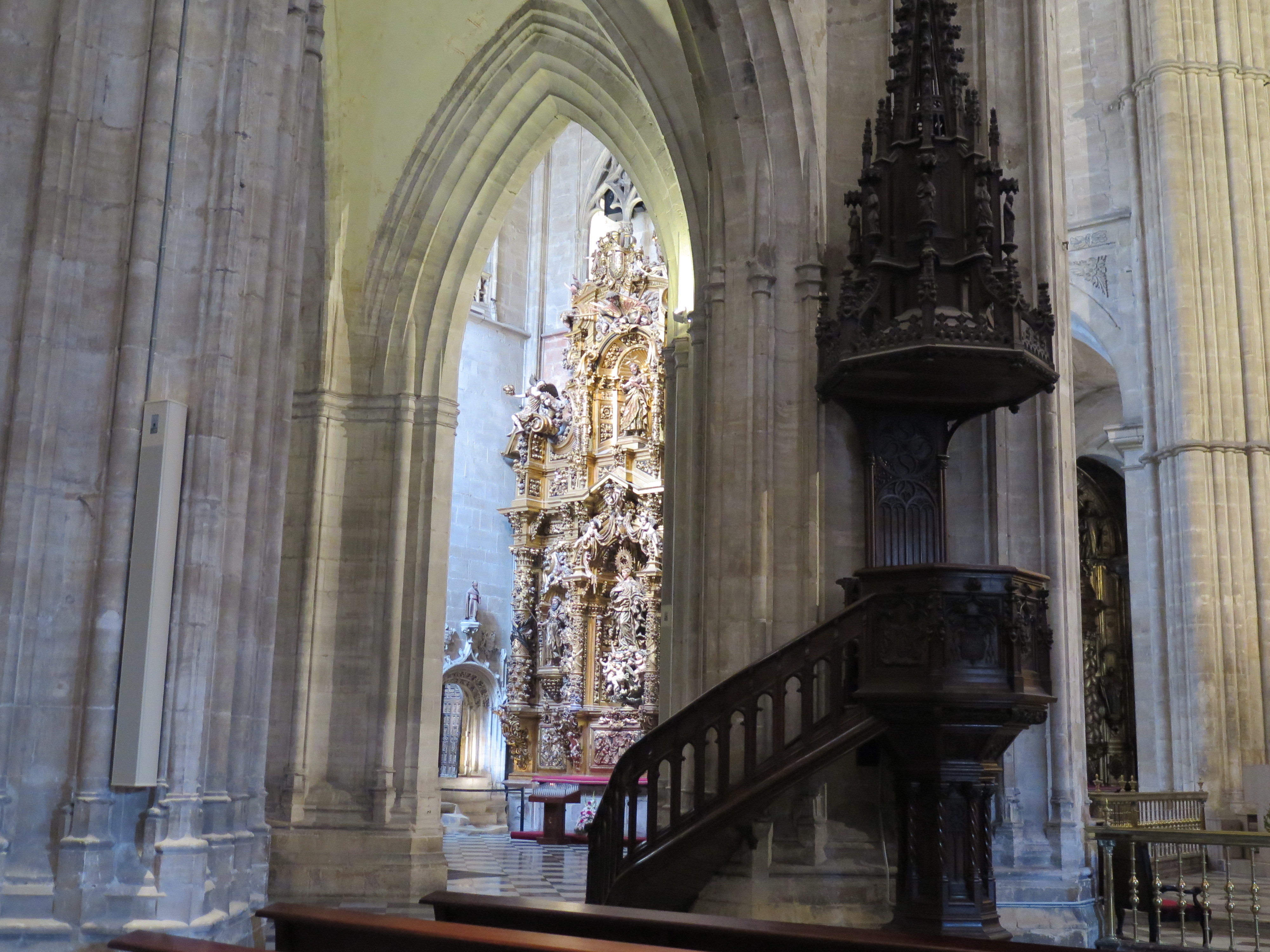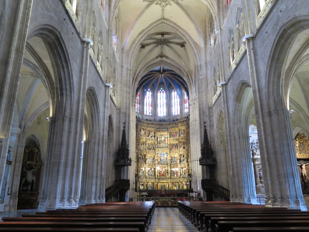 El templo gótico tiene tres naves y un transepto, obra de autores flamencos del siglo XV.