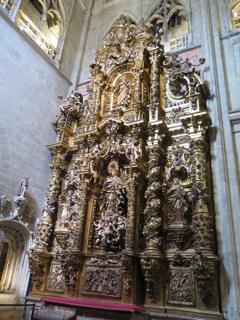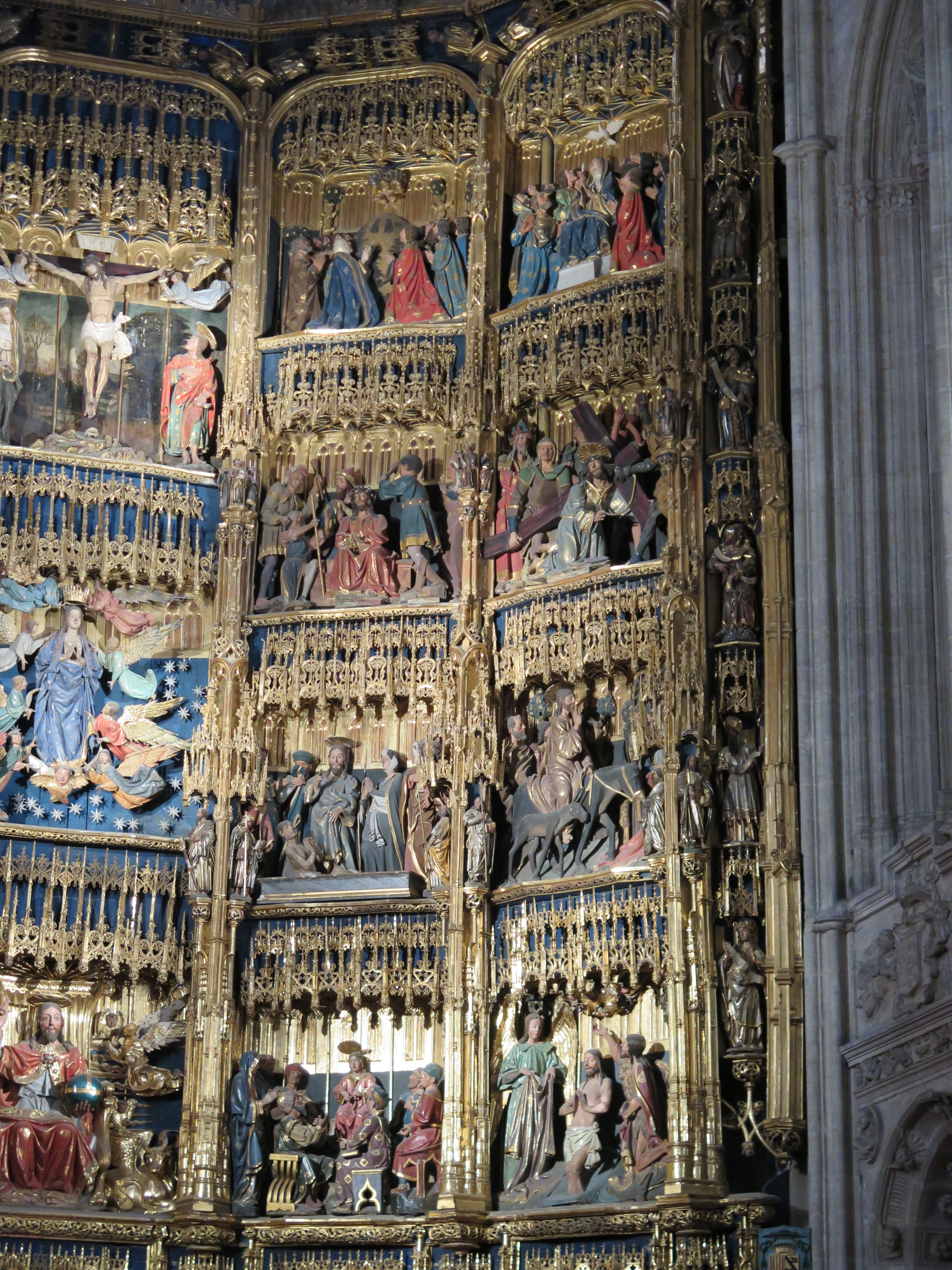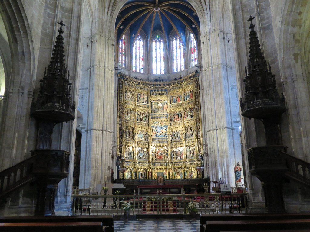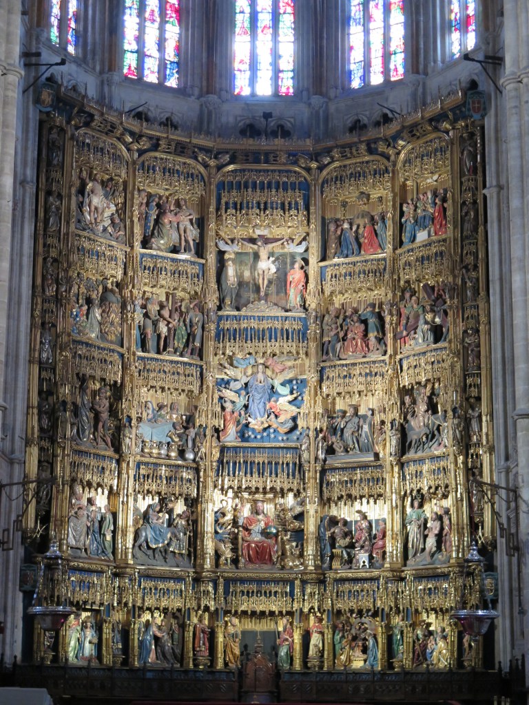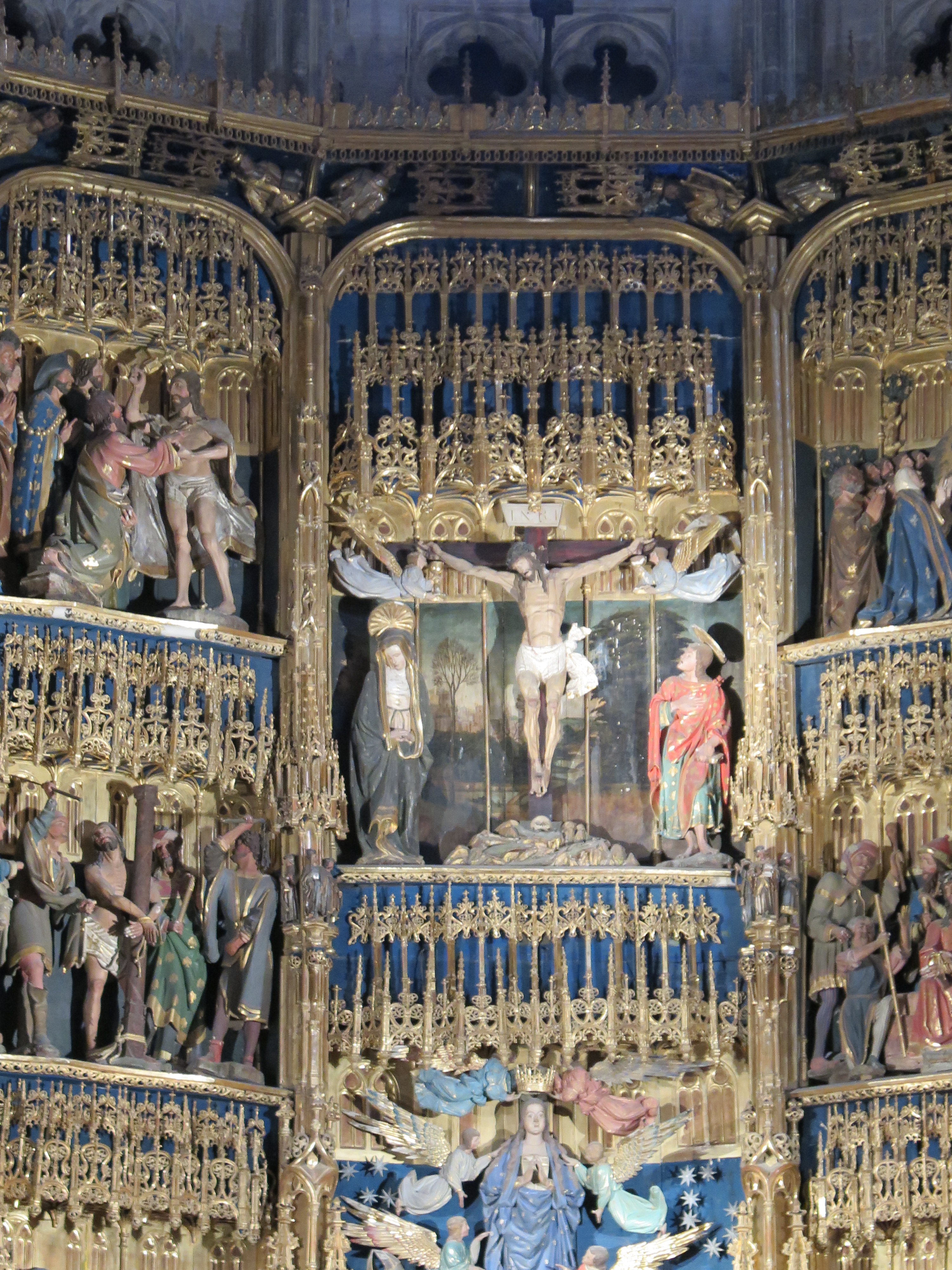 Retablo del altar mayor. De estilo gótico flamenco, se divide en cuatro cuerpos y cinco calles.