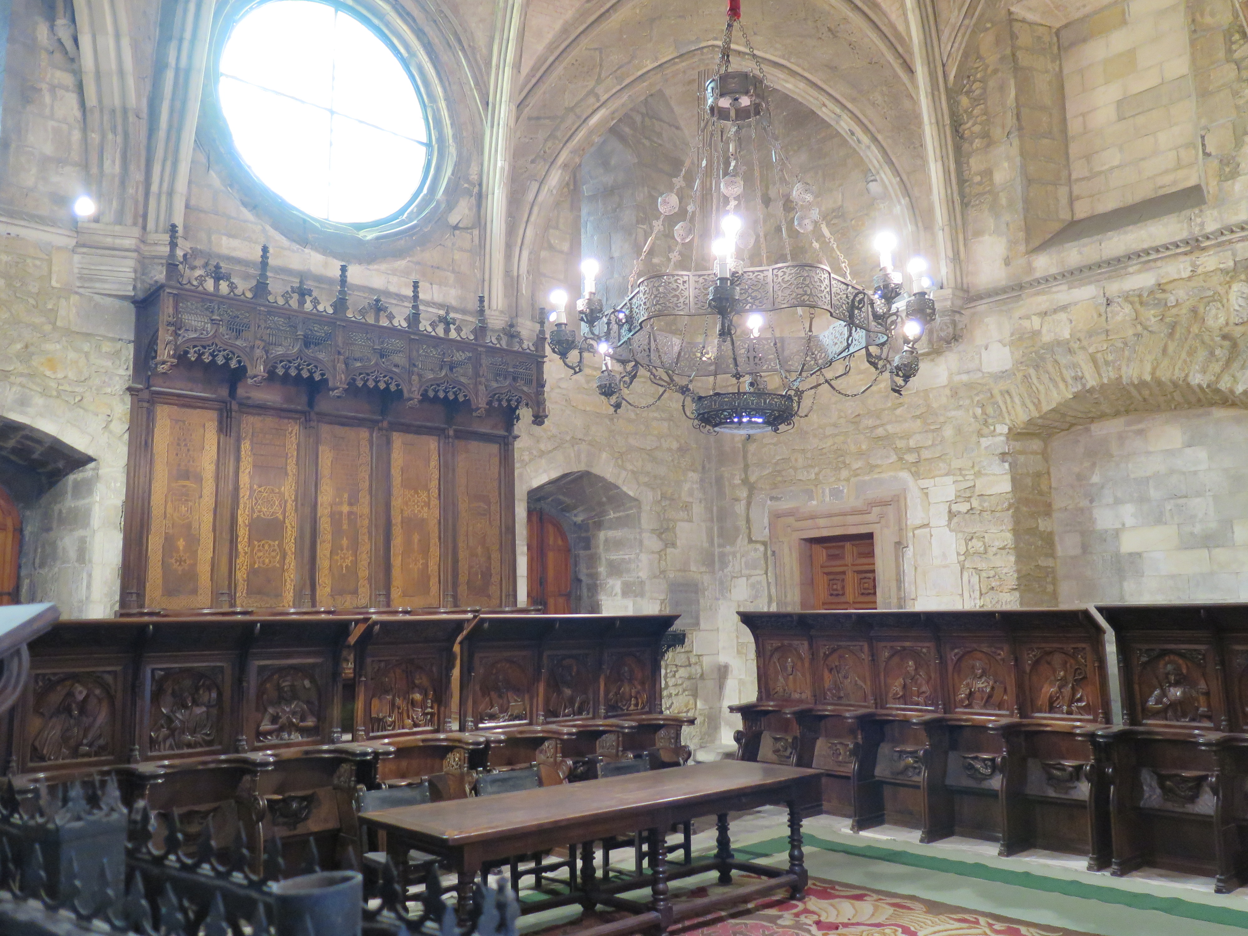 Sala Capitular. Es la primera edificación gótica de Asturias. Es de planta cuadrangular y tiene una bóveda apoyada en trompas. Los vanos que iluminan la estancia son del siglo XVIII. La sillería gótica es parte de la que estaba en el Coro y que en el siglo XX fue trasladada a diferentes lugares de la catedral por partes.