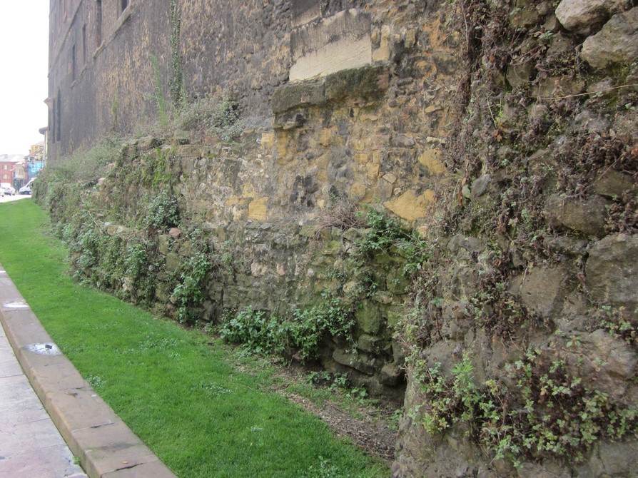 Fragmento de la antigua Muralla de Oviedo, de origen prerrománico, de la época de Alfonso II, del siglo IX.