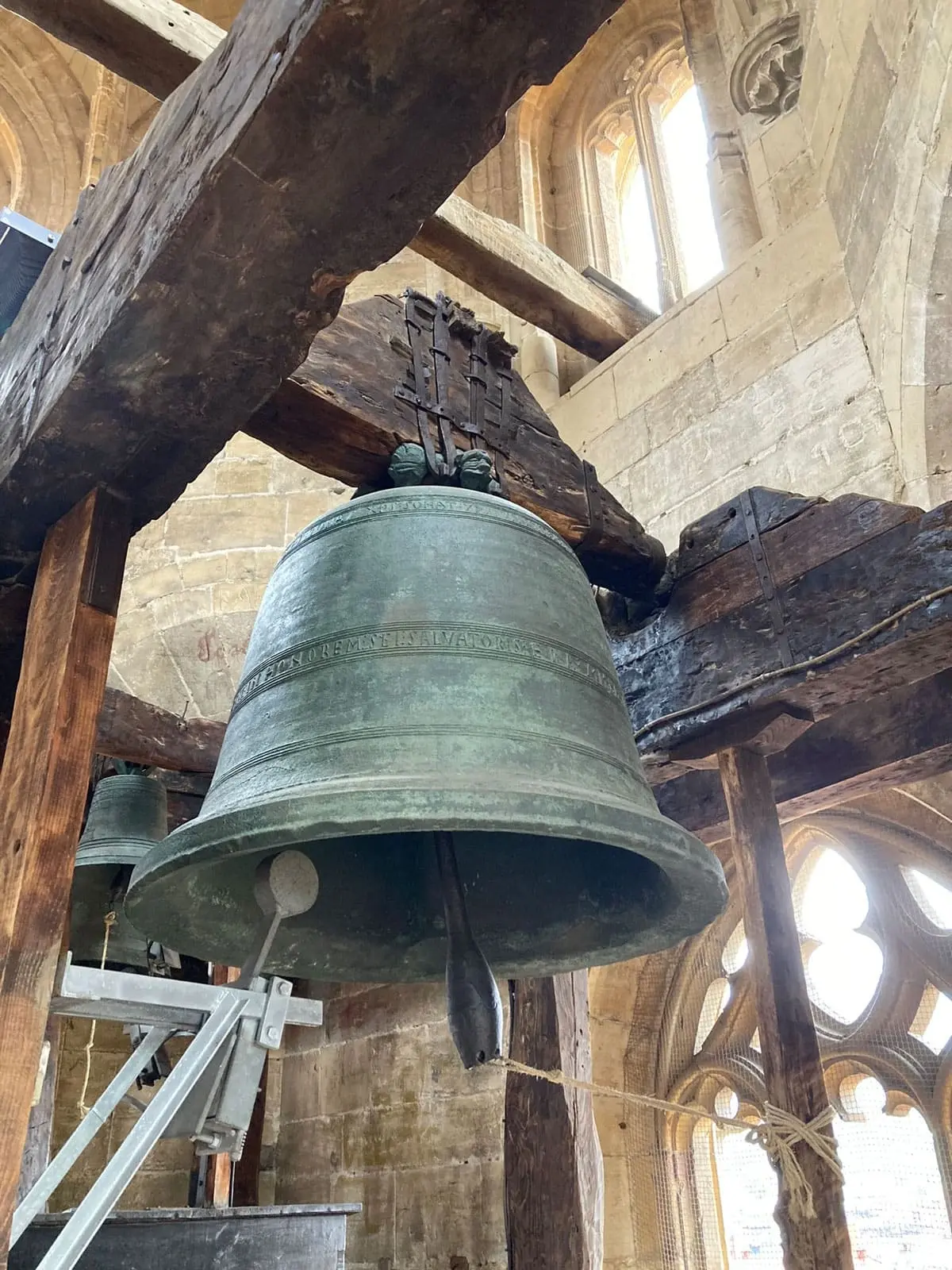 La campana Wamba. Detalle del reloj y de lo alto de la torre.