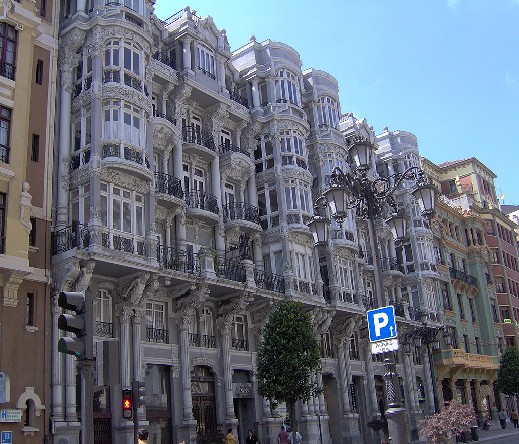 Casas del cuito, Calle Uría. Es la principal arteria comercial de Oviedo, con edificios de estilo modernista.