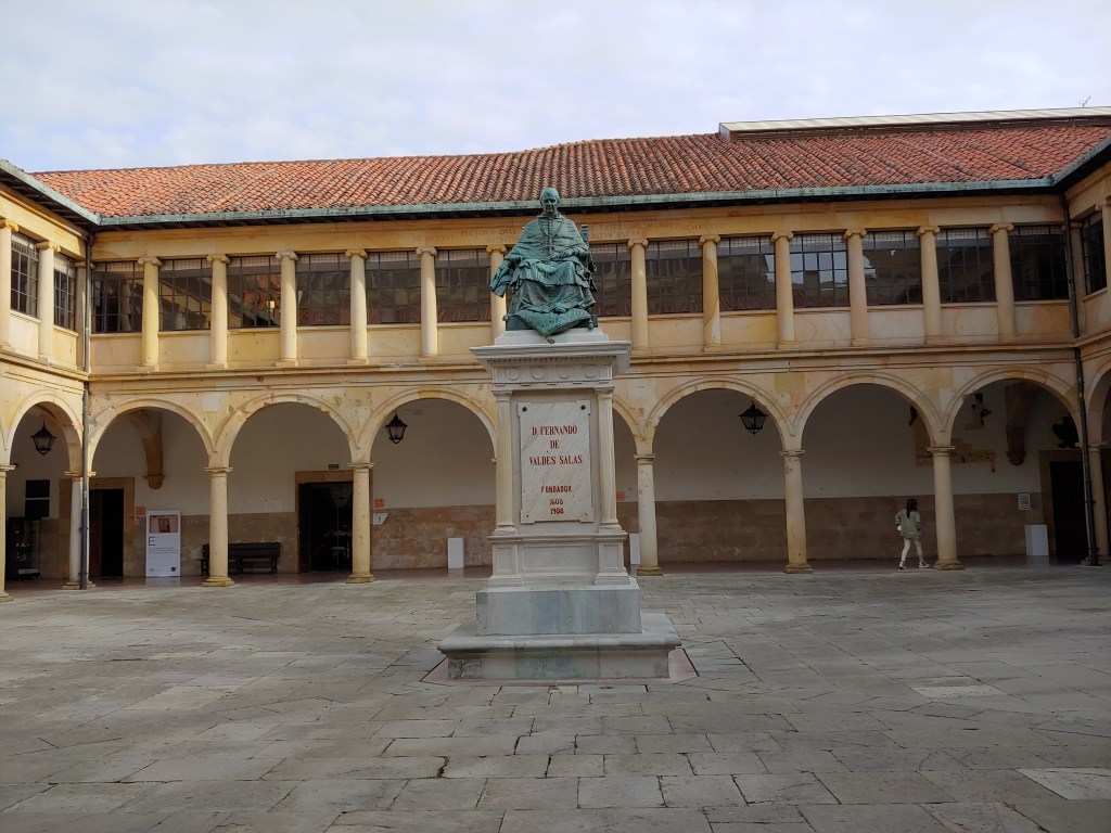 Patio central presidido por el fundador de la Universidad, el arzobispo Fernando Valdés Salas.