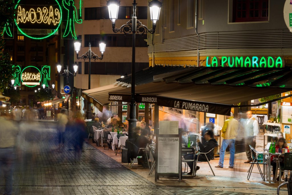 Calle Gascona, lo más recomendable para cenar, tomar tapas y sidra y escuchar cantares de sigre.