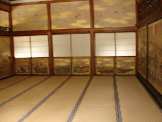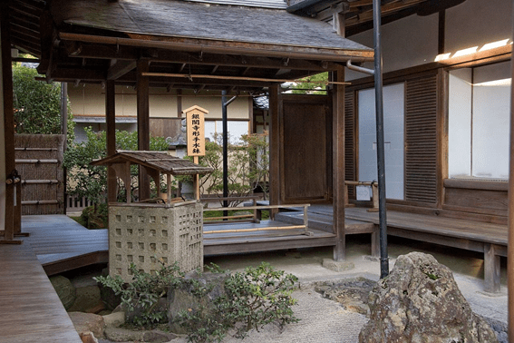 Tiene un salón, que se ha convertido en el prototipo de las salas para la ceremonia del té. Tiene una fuente de agua clara, de donde el shogun se servía.
