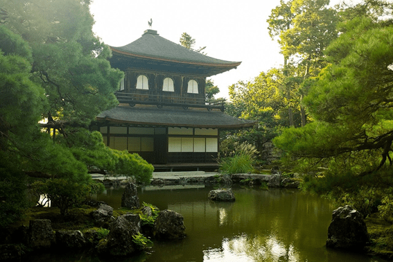 Templo Ginkakuji o Pabellon de plata. Por cierto, nunca estuvo pintado de color plateado. Templo budista, hermano de Kinkakuji, el pabellón dorado, donde el shogun Yoshimasa, del siglo XV, pasó su retiro buscando la perfección, tanto en las artes como en la ceremonia del té.