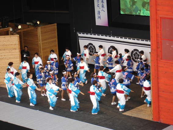 Espectáculo de baile de geishas. Hay espectáculos para turistas semejantes a éste, aunque la foto está tomada en la Exposición Mundial de Japón.